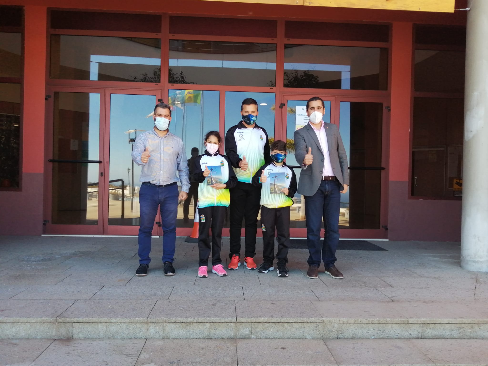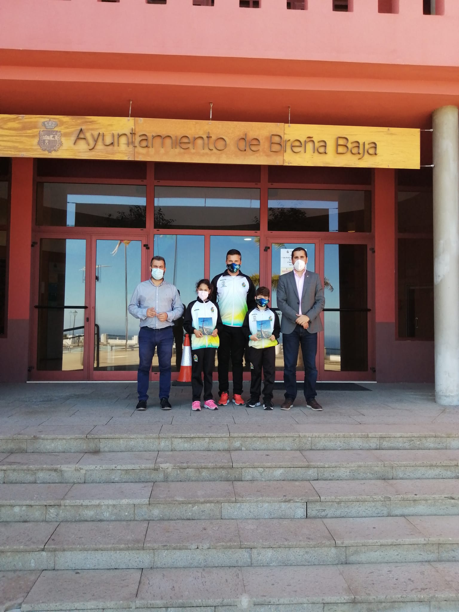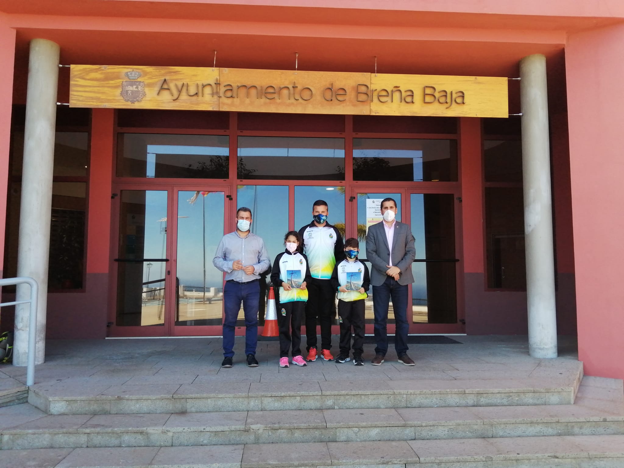 A finales de la semana pasada, el alcalde de Breña Baja, Borja Pérez, y el concejal de Deportes, Juan Manuel Pérez, recibieron a los jóvenes atletas del municipio Ainara Camacho Cabrera y Alonso Acero Martín, y a su preparador Victor González.
